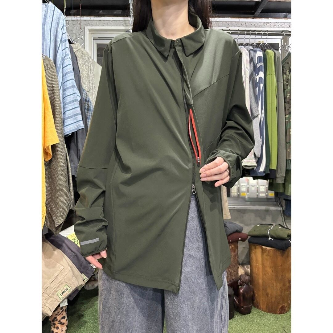 ダブルジップで比翼のデザイン、隠しポケット。