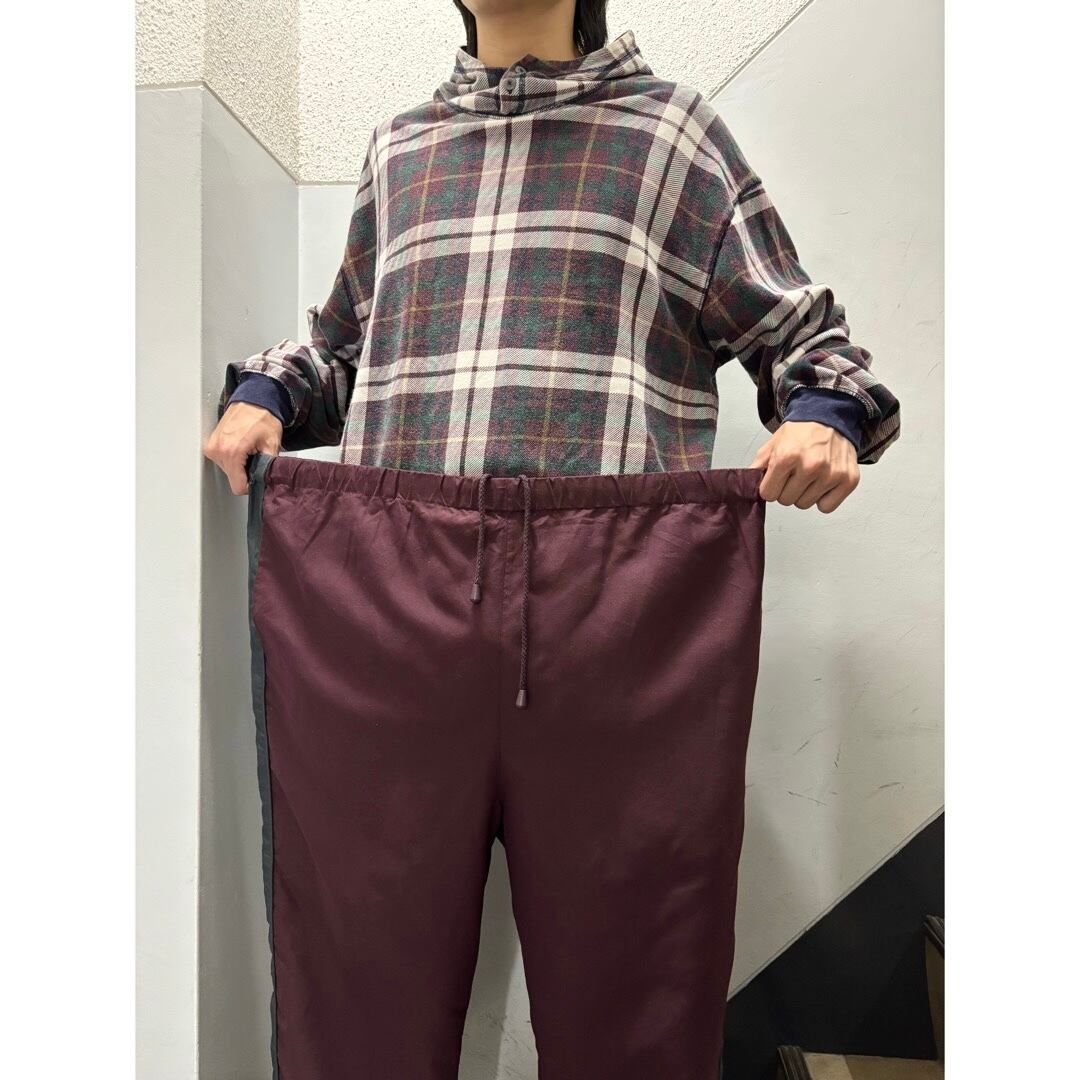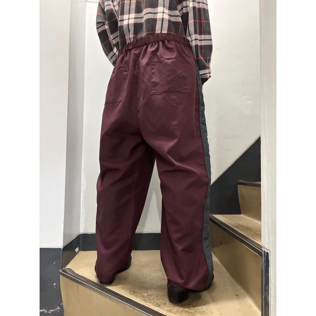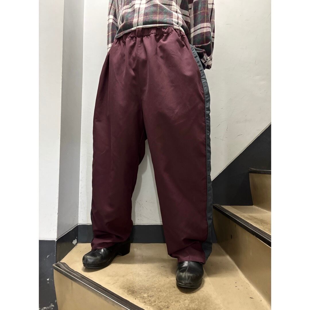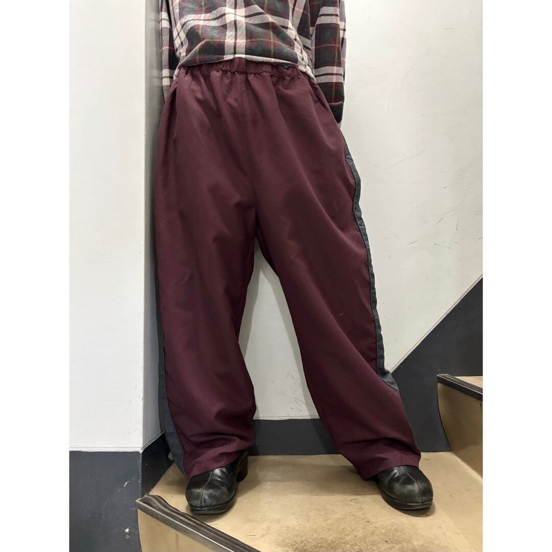サイドライン入りのトラックパンツ。