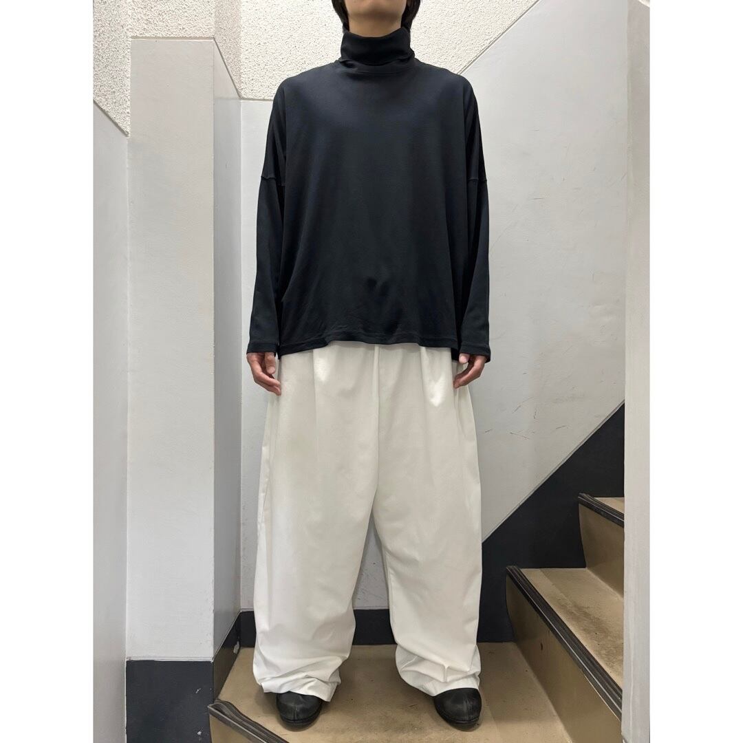 十八番のワイドシルエットでタートルネック。