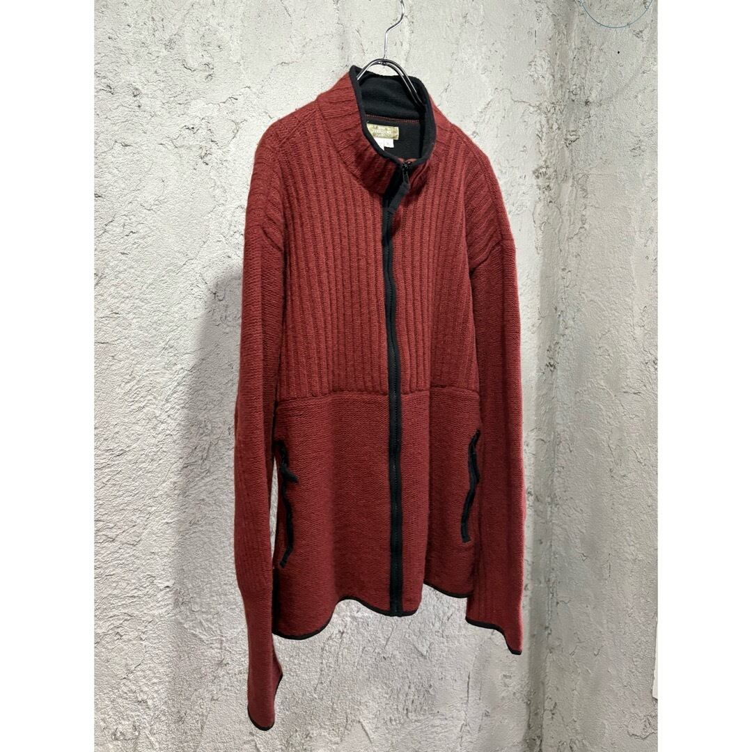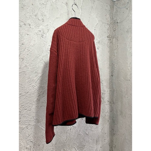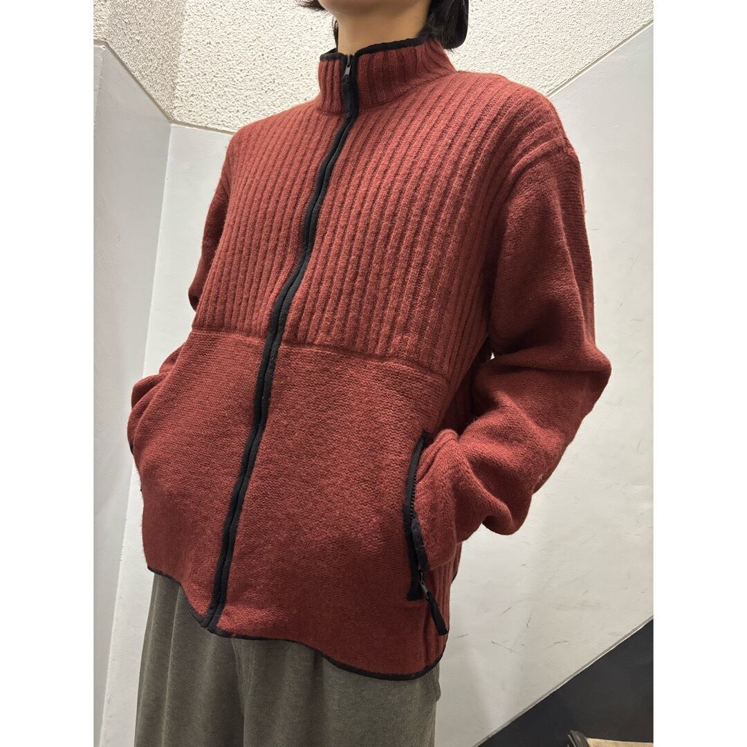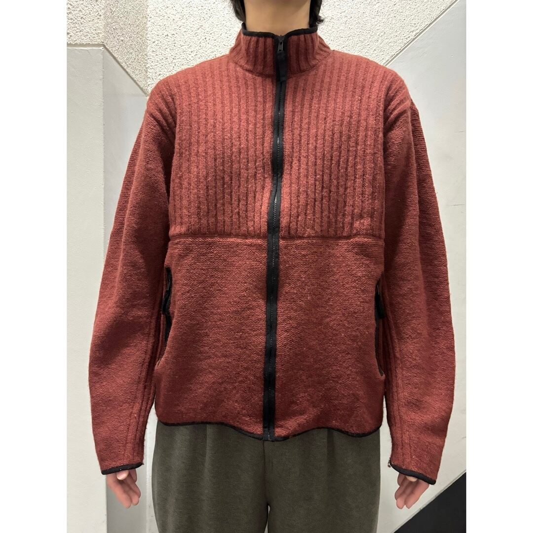 リブ編み切り替えのニットジャケット。