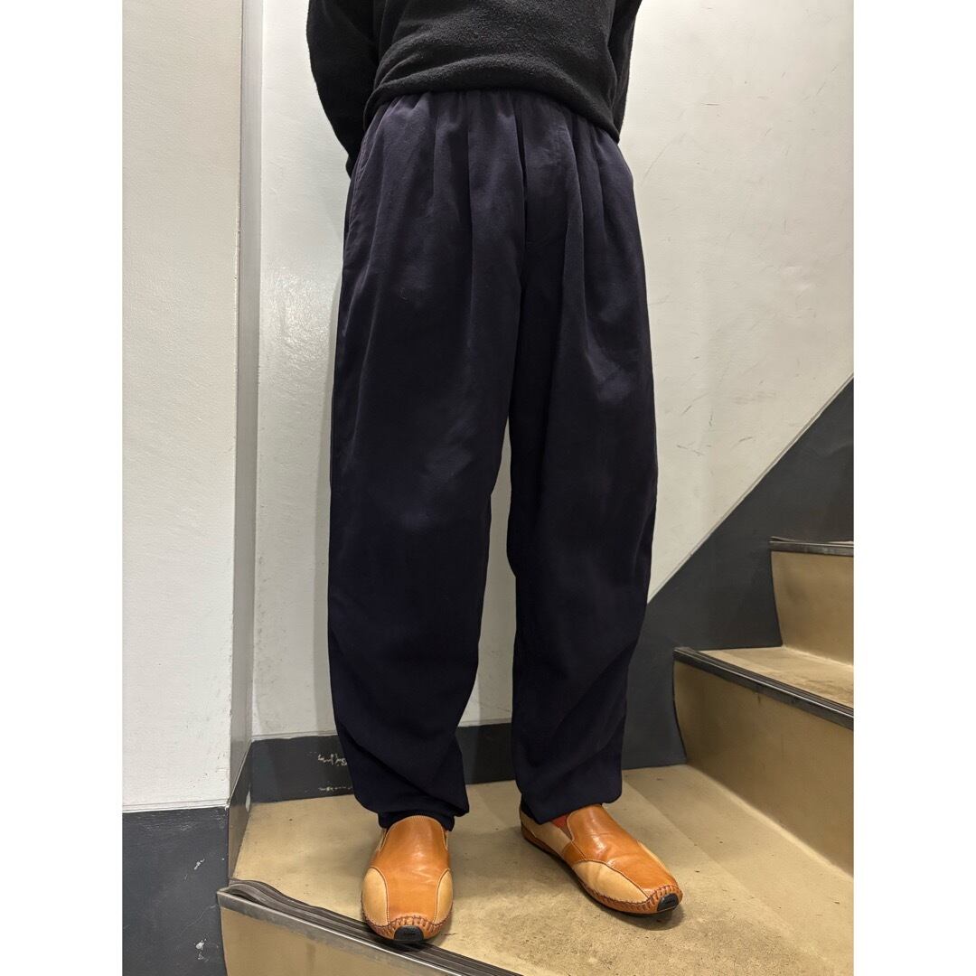 実寸 ウエスト84cm、ワタリ42cm、股上39cm、レングス77cm、裾幅20cm、総丈106cm