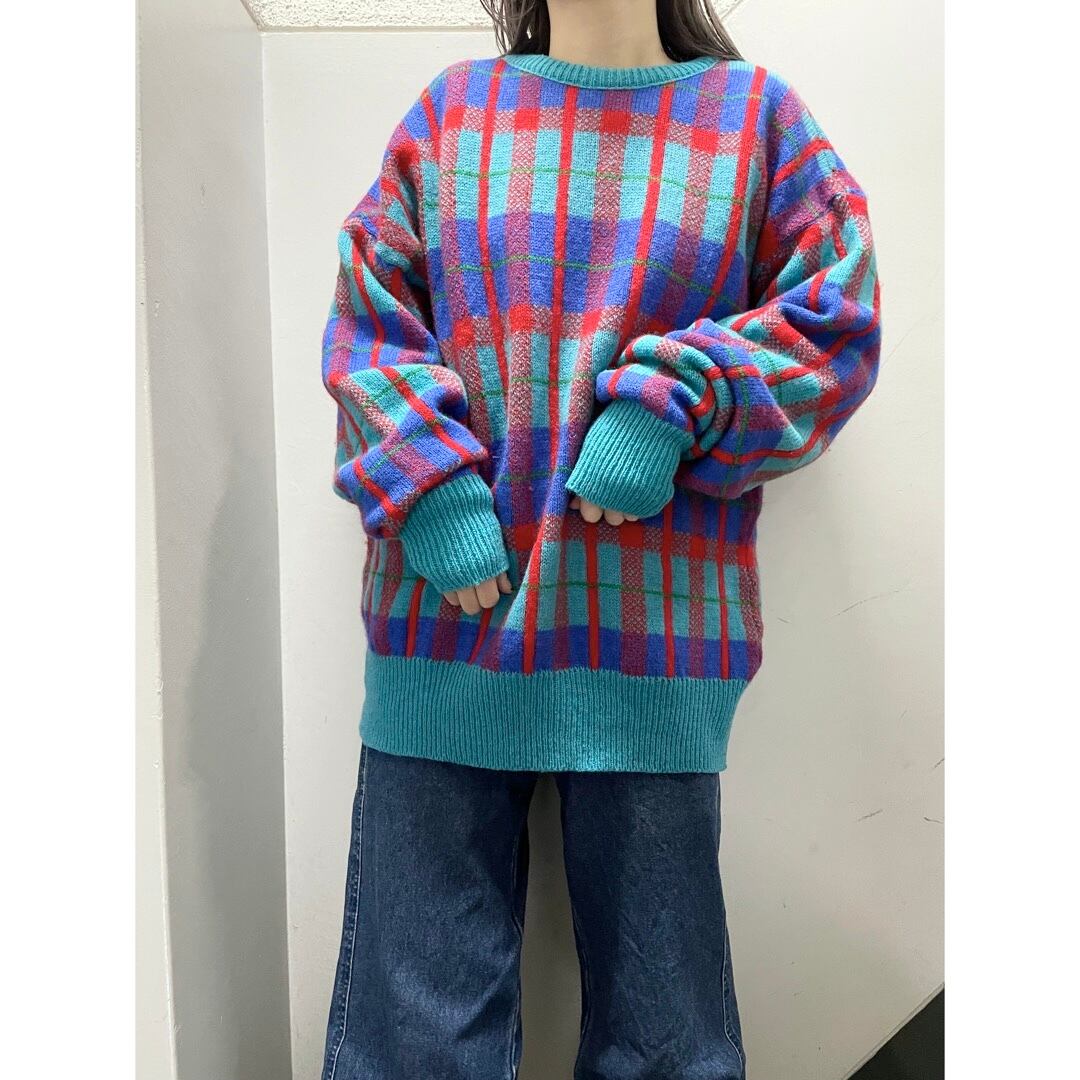 ポップな配色のチェック柄。