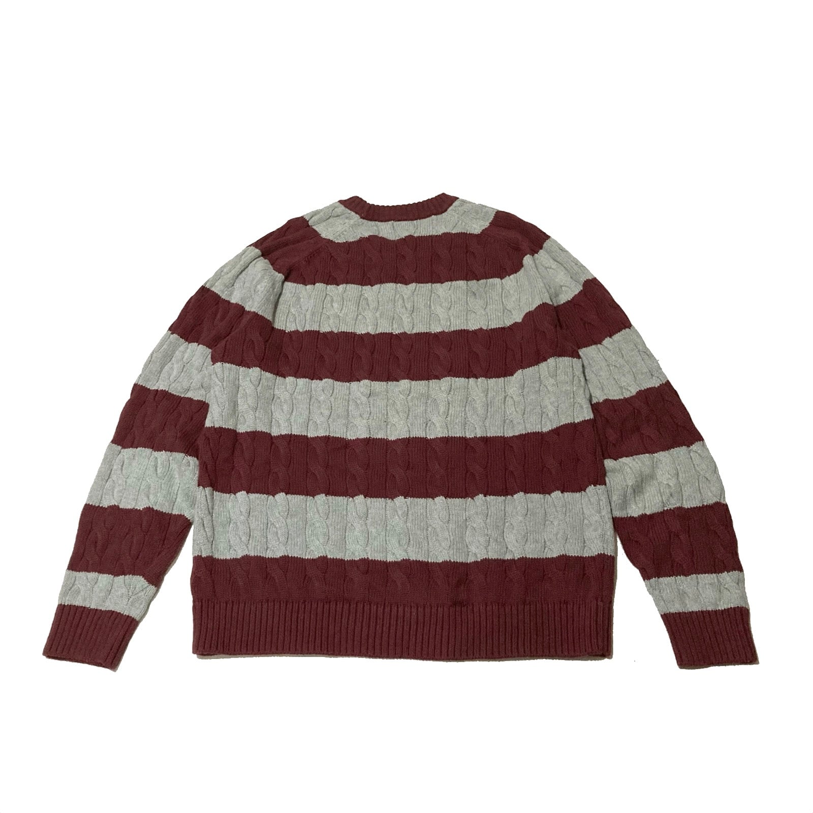 太ボーダーのケーブル編み。