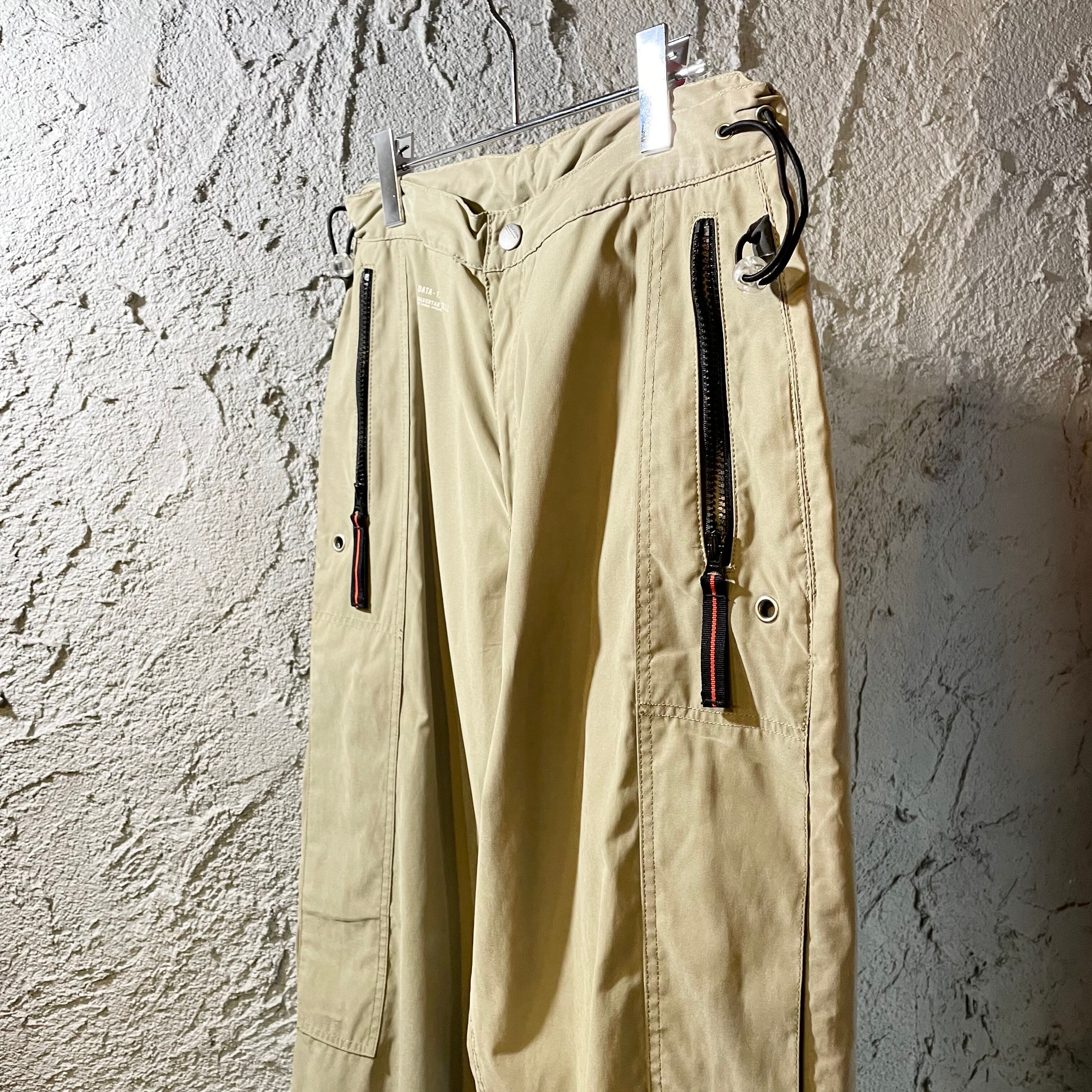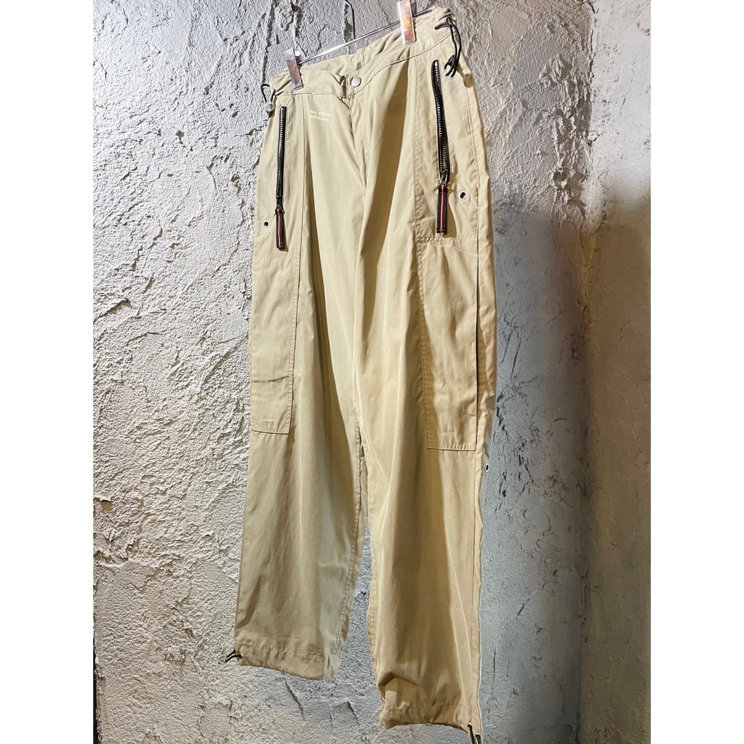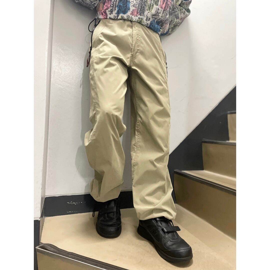 縦ジップの隠しポケット、裾とウエスト絞り付き。