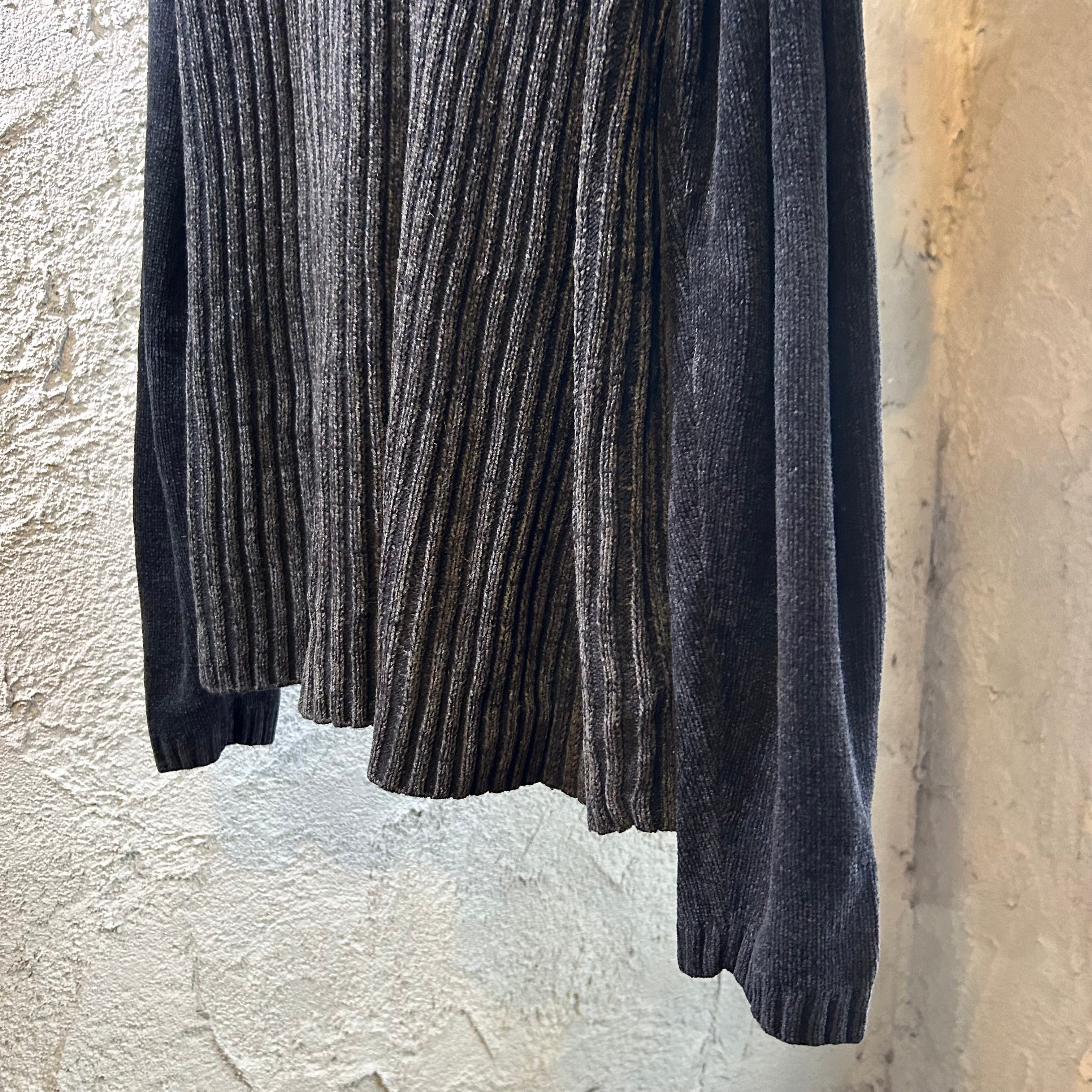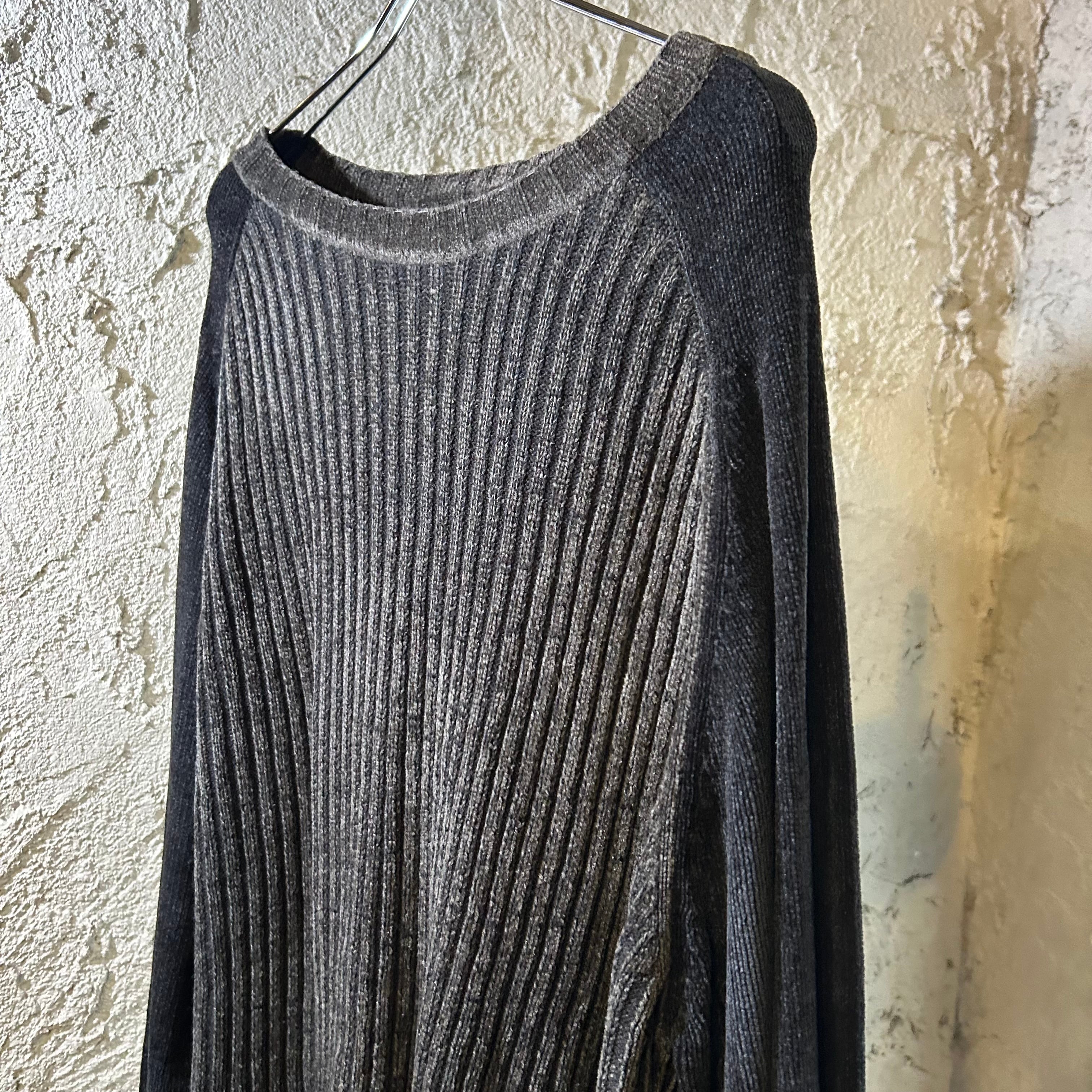 ラグラン切り替えのベロアリブニット。